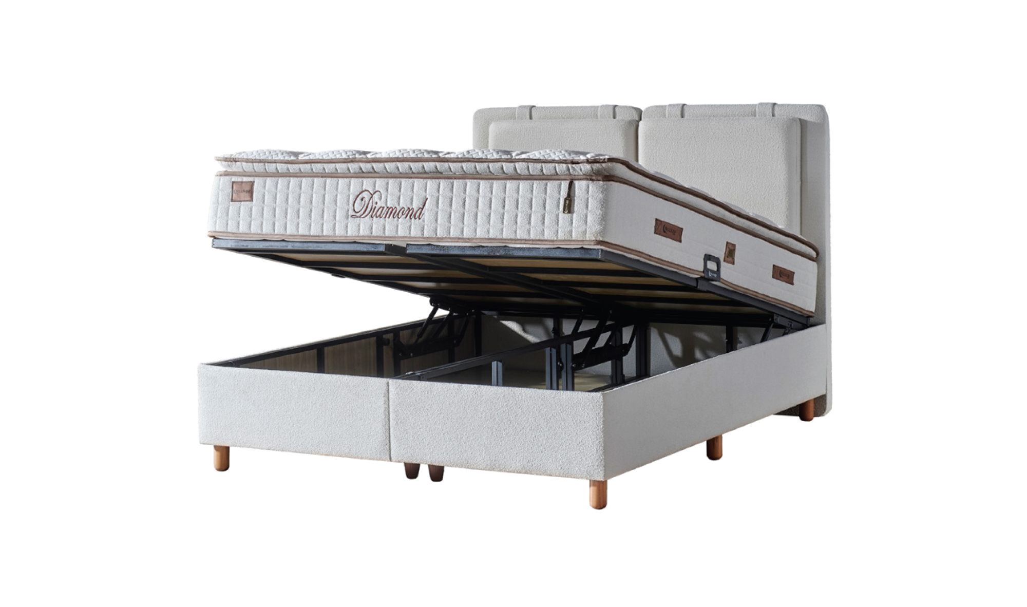 Diamond Yatak Set, adını taşıdığı gibi uykuya değer katan özel bir tasarıma sahiptir. Diamond pamuk örme kumaşıyla nefes alabilen, cilde dost bir yüzey sunar. Pamuklu termal keçe ve kuş tüyü sünger katmanları, yumuşacık bir uyku deneyimi sağlarken; paket yay sistemi vücudu ideal şekilde destekler ve omurga sağlığını korur. Hyper konfor süngeri ile güçlendirilmiş yapısı, basınç noktalarını azaltarak kesintisiz bir uyku konforu sunar. Tek taraflı kullanım özelliği sayesinde uzun süreli dayanıklılıkla ilk günkü rahatlığını korur.