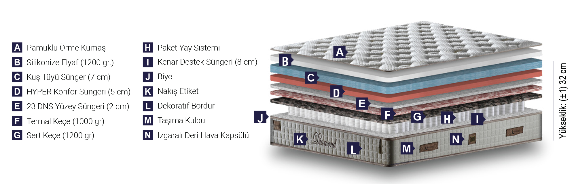 Lotus Yatak Set, zarif tasarımıyla yatak odanıza estetik bir dokunuş katarken, gelişmiş uyku teknolojileriyle konforunuzu en üst seviyeye taşır. Pamuk örme kumaşı cildinize yumuşaklık ve nefes alabilirlik sunarken, pamuklu termal keçe ve kuş tüyü sünger katmanları uyku boyunca ekstra rahatlık sağlar. Paket yay sistemi, vücudun farklı noktalarına doğru destek vererek omurga sağlığınızı korur. Hyper konfor süngeri ile zenginleştirilmiş yapısı, uyku sırasında basınç noktalarını azaltır. Çift taraflı kullanım özelliği sayesinde uzun yıllar ilk günkü formunu korur.